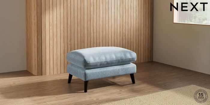 7.2.10 Buy Orlo Relaxed Sit Footstool Plush Chenille Light Blue Retro Tapered - Dark from the Seasons online shop Click here to use our website with more accessibility support, for example screen readers