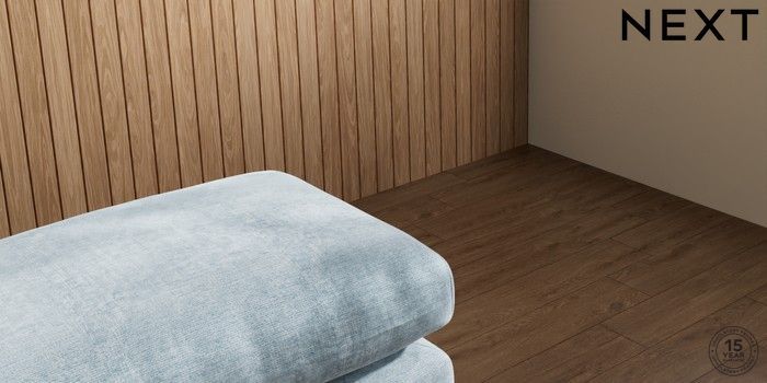 7.3.1 Buy Orlo Relaxed Sit Footstool Plush Chenille Light Blue Retro Tapered - Dark Brown from the Seasons online shop Click here to use our website with more accessibility support, for example screen readers
