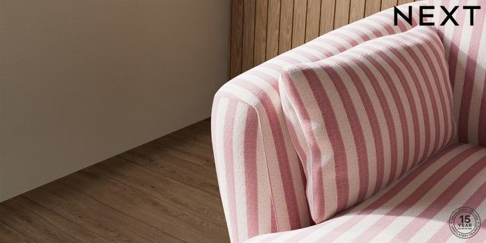 7.3.1 Buy Orlo Relaxed Sit Medium Sofa Chaise - Left Hand Bold Chenille Stripe Dark Pink Retro Tapered - Mid from the Seasons online shop Click here to use our website with more accessibility support, for example screen readers