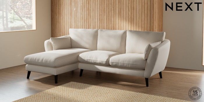 7.3.1 Buy Orlo Relaxed Sit Medium Sofa Chaise - Left Hand Chenille Stripe Natural Retro Tapered - Dark from the Seasons online shop Click here to use our website with more accessibility support, for example screen readers