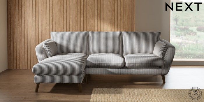 7.3.1 Buy Orlo Relaxed Sit Medium Sofa Chaise - Left Hand Chenille Stripe Slate Blue Retro Tapered - Mid from the Seasons online shop Click here to use our website with more accessibility support, for example screen readers