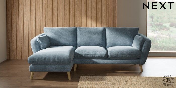 7.2.10 Buy Orlo Relaxed Sit Medium Sofa Chaise - Left Hand Plush Chenille Light Blue Retro Tapered - Light from the Seasons online shop Click here to use our website with more accessibility support, for example screen readers