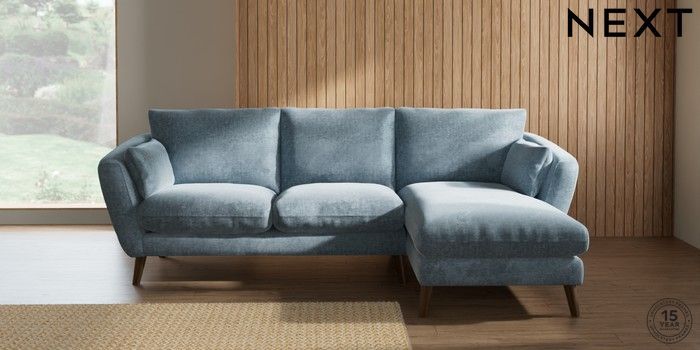 7.2.10 Buy Orlo Relaxed Sit Medium Sofa Chaise - Right Hand Plush Chenille Light Blue Retro Tapered - Mid from the Seasons online shop Click here to use our website with more accessibility support, for example screen readers