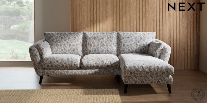 7.3.1 Buy Orlo Relaxed Sit Medium Sofa Chaise - Right Hand Relaxed Linen Look Print Woodblock Floral Blue Retro Tapered - Dark from the Seasons online shop