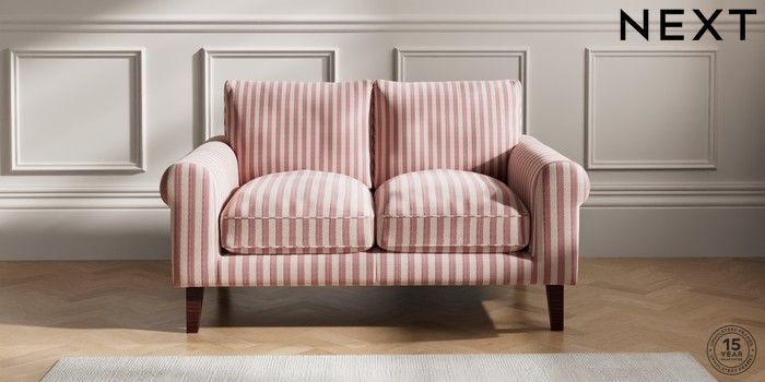 7.3.1 Buy Palermo Relaxed Sit 2 Seater Small Sofa Bold Chenille Stripe Dark Pink Tapered - Dark Brown from the Seasons online shop Click here to use our website with more accessibility support, for example screen readers