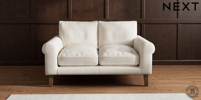 7.3.1 Buy Palermo Relaxed Sit 2 Seater Small Sofa Chenille Stripe Natural Tapered - Mid from the Seasons online shop Click here to use our website with more accessibility support, for example screen readers
