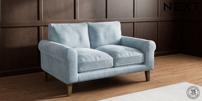 7.2.10 Buy Palermo Relaxed Sit 2 Seater Small Sofa Plush Chenille Light Blue Tapered - Mid from the Seasons online shop Click here to use our website with more accessibility support, for example screen readers