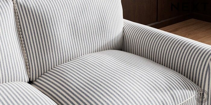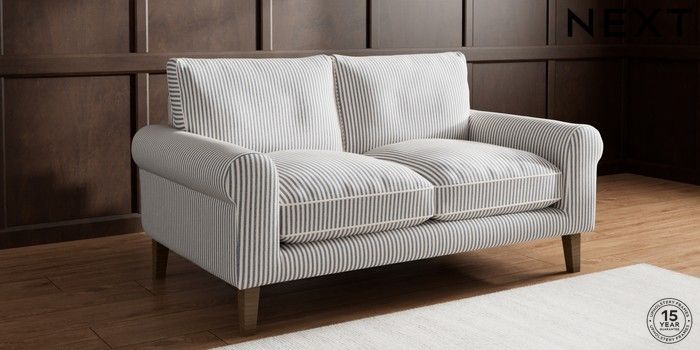 7.3.1 Buy Palermo Relaxed Sit 2 Seater Sofa Chenille Stripe Slate Blue Tapered - Mid from the Seasons online shop Click here to use our website with more accessibility support, for example screen readers