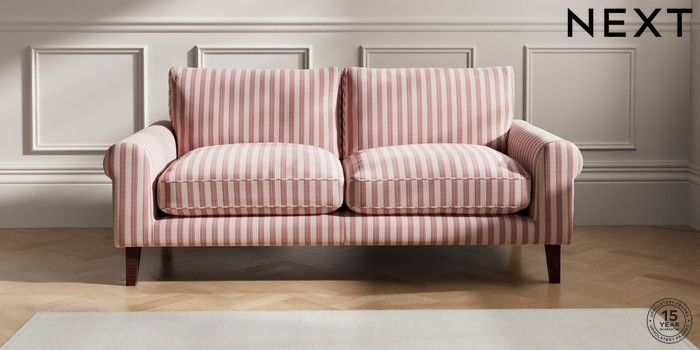 7.3.1 Buy Palermo Relaxed Sit 3 Seater Sofa Bold Chenille Stripe Dark Pink Tapered - Dark Brown from the Seasons online shop Click here to use our website with more accessibility support, for example screen readers