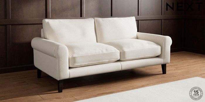 7.3.1 Buy Palermo Relaxed Sit 3 Seater Sofa Chenille Stripe Natural Tapered - Dark from the Seasons online shop Click here to use our website with more accessibility support, for example screen readers