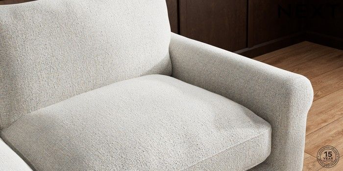 A chunky, hardwearing fabric with a timeless look which can tackle most household stains by blotting or gently wiping the fabric with water and a mild detergent. This Fabric is covered by the Quality Fabric Kitemark