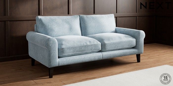 7.2.10 Buy Palermo Relaxed Sit 3 Seater Sofa Plush Chenille Light Blue Tapered - Dark from the Seasons online shop Click here to use our website with more accessibility support, for example screen readers