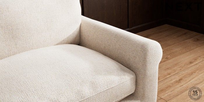 A chunky, hardwearing fabric with a timeless look which can tackle most household stains by blotting or gently wiping the fabric with water and a mild detergent. This Fabric is covered by the Quality Fabric Kitemark