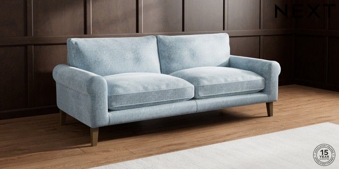 7.2.10 Buy Palermo Relaxed Sit 4 Seater Sofa Plush Chenille Light Blue Tapered - Mid from the Seasons online shop Click here to use our website with more accessibility support, for example screen readers