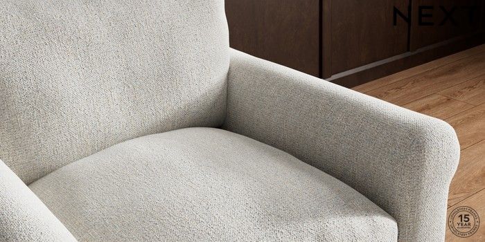 A chunky, hardwearing fabric with a timeless look which can tackle most household stains by blotting or gently wiping the fabric with water and a mild detergent. This Fabric is covered by the Quality Fabric Kitemark