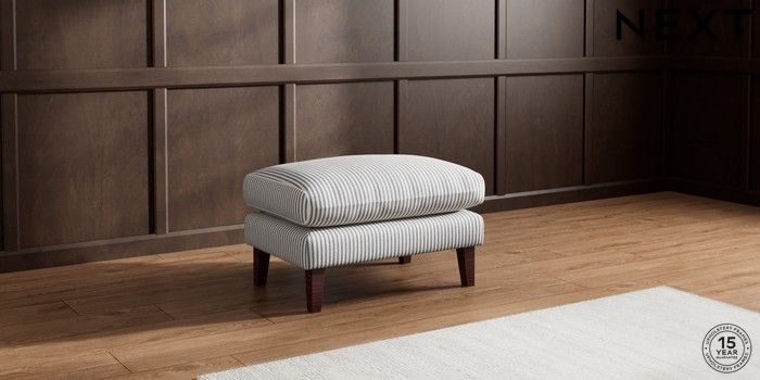 7.3.1 Buy Palermo Relaxed Sit Footstool Chenille Stripe Slate Blue Tapered - Dark Brown from the Seasons online shop Click here to use our website with more accessibility support, for example screen readers