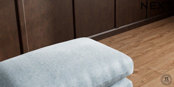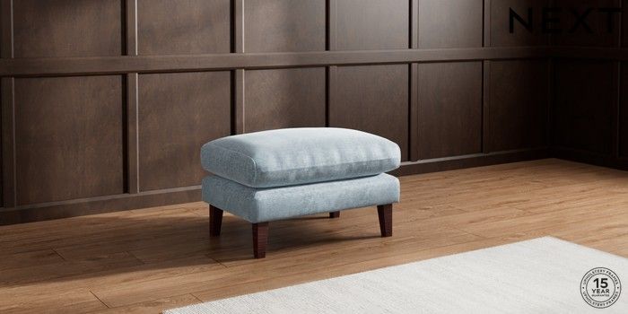 7.2.10 Buy Palermo Relaxed Sit Footstool Plush Chenille Light Blue Tapered - Dark Brown from the Seasons online shop Click here to use our website with more accessibility support, for example screen readers