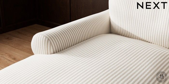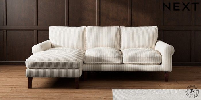 7.3.1 Buy Palermo Relaxed Sit Medium Sofa Chaise - Left Hand Chenille Stripe Natural Tapered - Dark Brown from the Seasons online shop Click here to use our website with more accessibility support, for example screen readers
