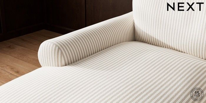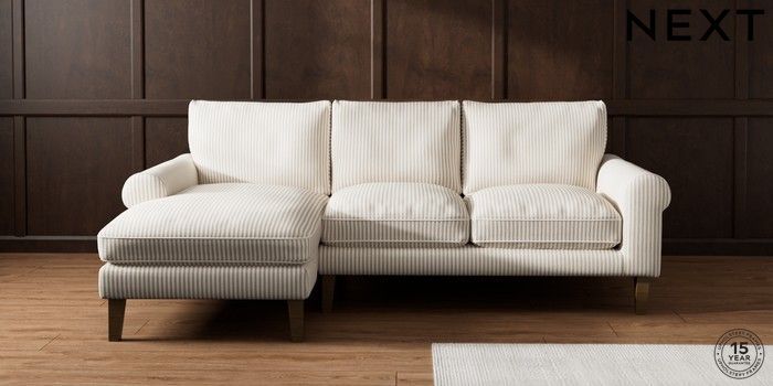 7.3.1 Buy Palermo Relaxed Sit Medium Sofa Chaise - Left Hand Chenille Stripe Natural Tapered - Mid from the Seasons online shop Click here to use our website with more accessibility support, for example screen readers