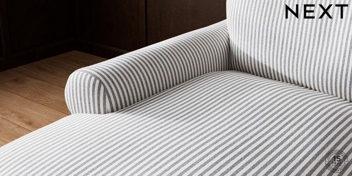 7.3.1 Buy Palermo Relaxed Sit Medium Sofa Chaise - Left Hand Chenille Stripe Slate Blue Tapered - Dark Brown from the Seasons online shop Click here to use our website with more accessibility support, for example screen readers