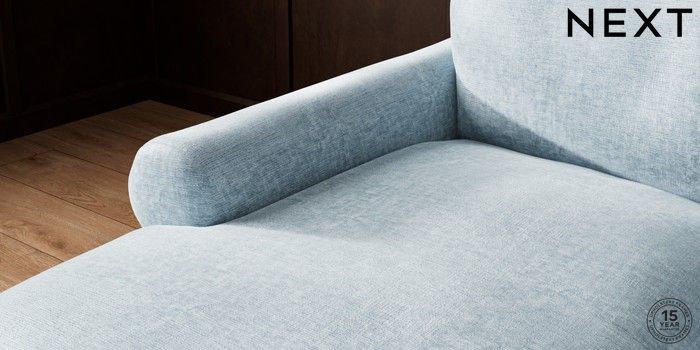 7.2.10 Buy Palermo Relaxed Sit Medium Sofa Chaise - Left Hand Plush Chenille Light Blue Tapered - Light from the Seasons online shop Click here to use our website with more accessibility support, for example screen readers
