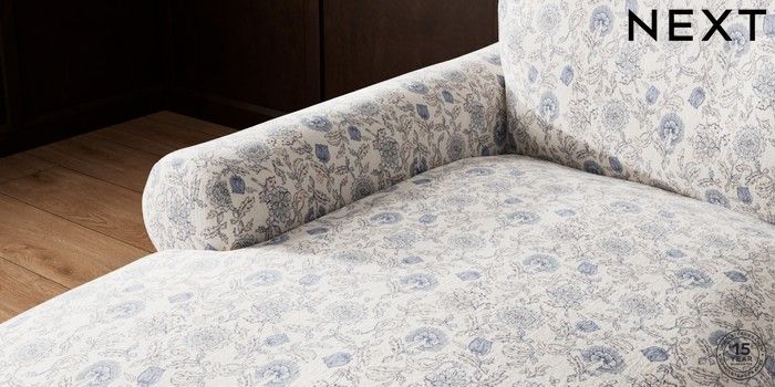 7.3.1 Buy Palermo Relaxed Sit Medium Sofa Chaise - Left Hand Relaxed Linen Look Print Woodblock Floral Blue Tapered - Light from the Seasons online shop Click here to use our website with more accessibility support, for example screen readers