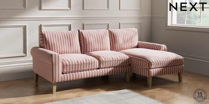 7.3.1 Buy Palermo Relaxed Sit Medium Sofa Chaise - Right Hand Bold Chenille Stripe Dark Pink Tapered - Light from the Seasons online shop Click here to use our website with more accessibility support, for example screen readers