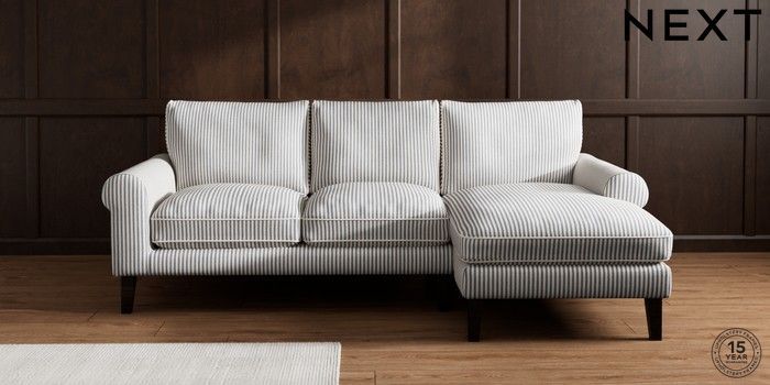 7.3.1 Buy Palermo Relaxed Sit Medium Sofa Chaise - Right Hand Chenille Stripe Slate Blue Tapered - Dark from the Seasons online shop Click here to use our website with more accessibility support, for example screen readers