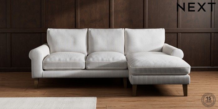 7.3.1 Buy Palermo Relaxed Sit Medium Sofa Chaise - Right Hand Chenille Stripe Slate Blue Tapered - Mid from the Seasons online shop Click here to use our website with more accessibility support, for example screen readers