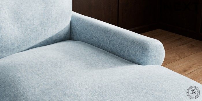 7.2.10 Buy Palermo Relaxed Sit Medium Sofa Chaise - Right Hand Plush Chenille Light Blue Tapered - Mid from the Seasons online shop Click here to use our website with more accessibility support, for example screen readers