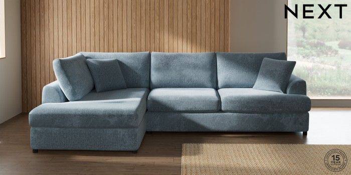 7.2.10 Buy Parker Platform Large Corner Chaise - Left Hand Plush Chenille Light Blue Glide from the Seasons online shop Click here to use our website with more accessibility support, for example screen readers