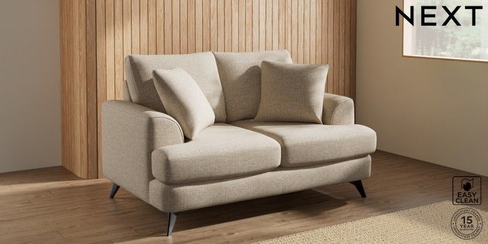 7.3.1 Buy Parker 2 Seater Small Sofa Boucle Weave Easy Clean Dark Natural High Metal - Black from the Seasons online shop Click here to use our website with more accessibility support, for example screen readers