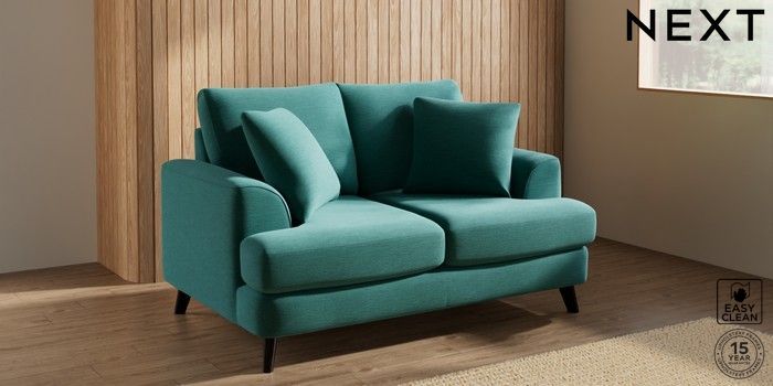 7.3.1 Buy Parker 2 Seater Small Sofa Fine Chenille Easy Clean Dark Juniper Green Low Retro Tapered - Dark from the Seasons online shop Click here to use our website with more accessibility support, for example screen readers