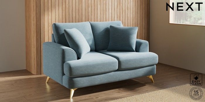 7.3.1 Buy Parker 2 Seater Small Sofa Fine Chenille Easy Clean Mid Blue High Metal - Brass from the Seasons online shop Click here to use our website with more accessibility support, for example screen readers