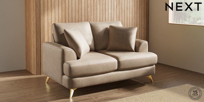 7.3.1 Buy Parker 2 Seater Small Sofa Luxe Chenille Mid Camel Beige High Metal - Brass from the Seasons online shop Click here to use our website with more accessibility support, for example screen readers