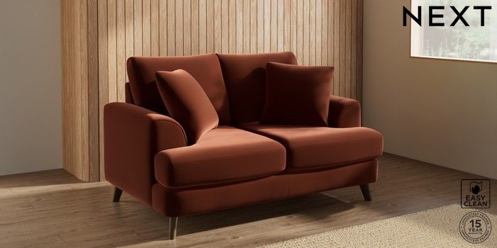7.3.1 Buy Parker 2 Seater Small Sofa Plush Velvet Easy Clean Ginger Orange Low Retro Tapered - Mid from the Seasons online shop Click here to use our website with more accessibility support, for example screen readers