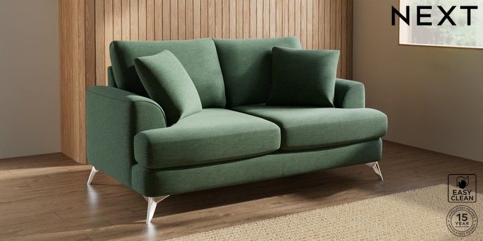 7.3.1 Buy Parker 3 Seater Small Sofa Fine Chenille Easy Clean Mid Khaki Green High Metal - Chrome from the Seasons online shop Click here to use our website with more accessibility support, for example screen readers