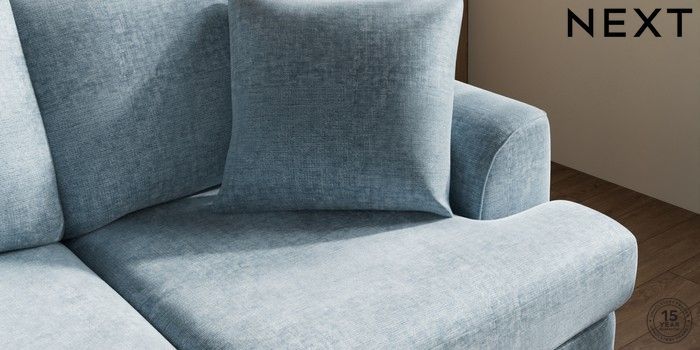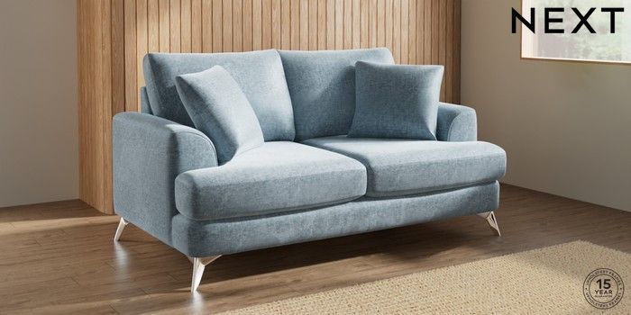 7.2.10 Buy Parker 3 Seater Small Sofa Plush Chenille Light Blue High Metal - Chrome from the Seasons online shop Click here to use our website with more accessibility support, for example screen readers