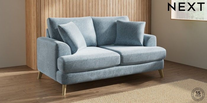7.2.10 Buy Parker 3 Seater Small Sofa Plush Chenille Light Blue Low Retro Tapered - Light from the Seasons online shop Click here to use our website with more accessibility support, for example screen readers
