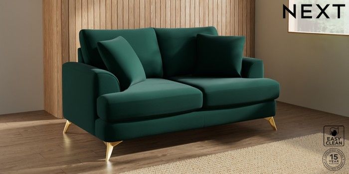 7.3.1 Buy Parker 3 Seater Small Sofa Plush Velvet Easy Clean Bottle Green High Metal - Brass from the Seasons online shop