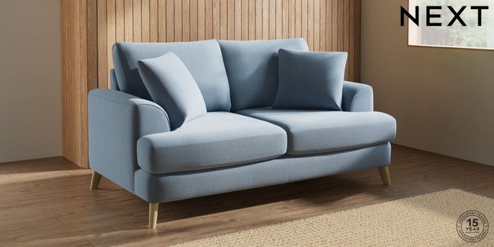 7.3.1 Buy Parker 3 Seater Small Sofa Relaxed Linen Look Mid Blue Low Retro Tapered - Light from the Seasons online shop Click here to use our website with more accessibility support, for example screen readers