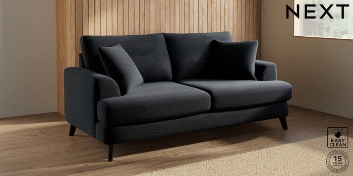 7.3.1 Buy Parker 3 Seater Sofa Fine Chenille Easy Clean Black Low Retro Tapered - Dark from the Seasons online shop Click here to use our website with more accessibility support, for example screen readers