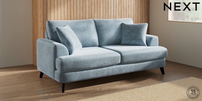 7.3.1 Buy Parker 3 Seater Sofa Plush Chenille Light Blue Low Retro Tapered - Dark from the Seasons online shop Click here to use our website with more accessibility support, for example screen readers