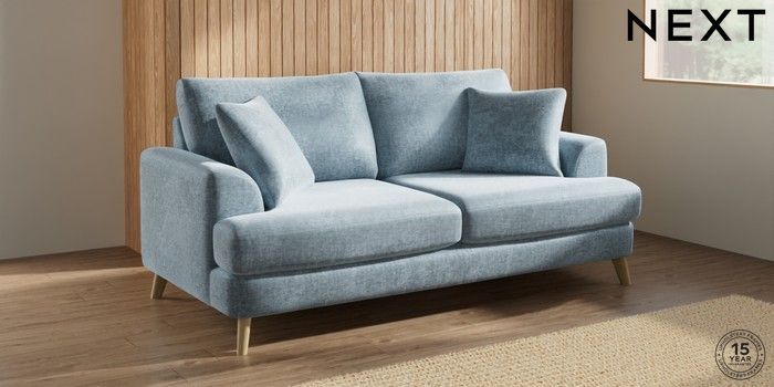 7.2.10 Buy Parker 3 Seater Sofa Plush Chenille Light Blue Low Retro Tapered - Light from the Seasons online shop Click here to use our website with more accessibility support, for example screen readers