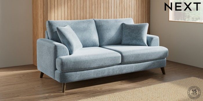 7.2.10 Buy Parker 3 Seater Sofa Plush Chenille Light Blue Low Retro Tapered - Mid from the Seasons online shop Click here to use our website with more accessibility support, for example screen readers
