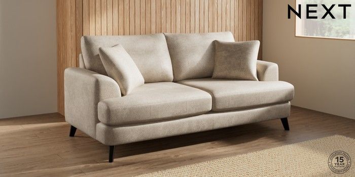 7.3.1 Buy Parker 3 Seater Sofa Plush Chenille Light Natural Low Retro Tapered - Dark from the Seasons online shop Click here to use our website with more accessibility support, for example screen readers