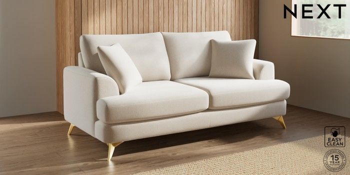 7.3.1 Buy Parker 3 Seater Sofa Tweedy Blend Easy Clean Oyster High Metal - Brass from the Seasons online shop Click here to use our website with more accessibility support, for example screen readers