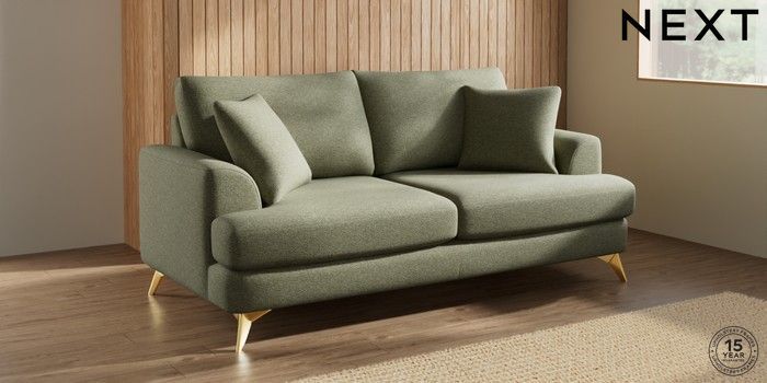 7.3.1 Buy Parker 3 Seater Sofa Tweedy Chenille Mid Moss Green High Metal - Brass from the Seasons online shop Click here to use our website with more accessibility support, for example screen readers