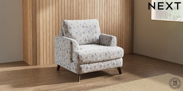 7.3.1 Buy Parker Armchair Relaxed Linen Look Print Woodblock Floral Blue Low Retro Tapered - Mid from the Seasons online shop