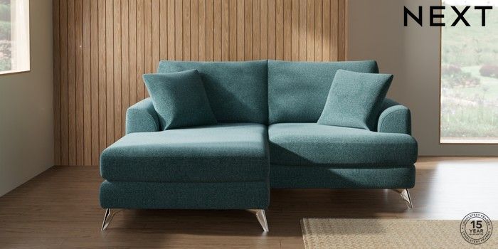 7.3.1 Buy Parker Compact Sofa Chaise - Universal Chunky Chenille Mid Teal Green High Metal - Chrome from the Seasons online shop Click here to use our website with more accessibility support, for example screen readers
